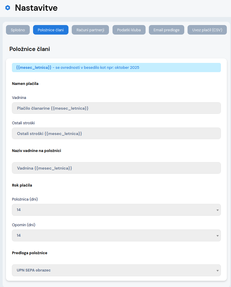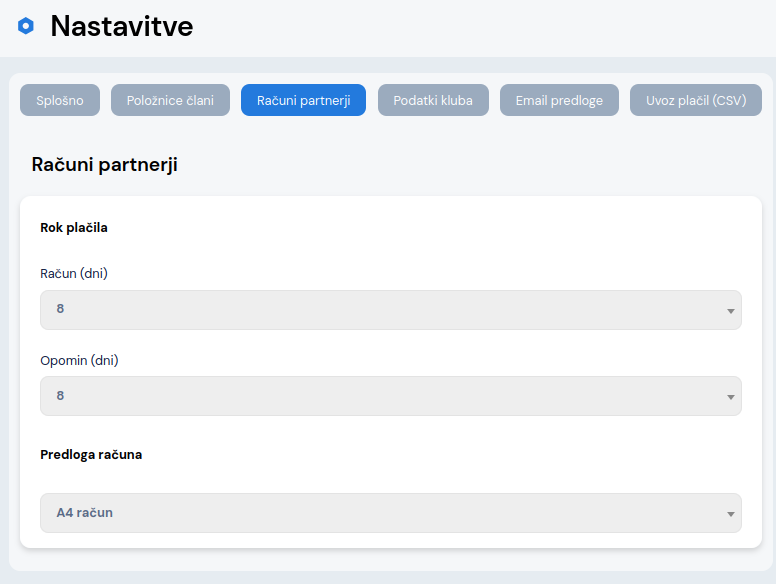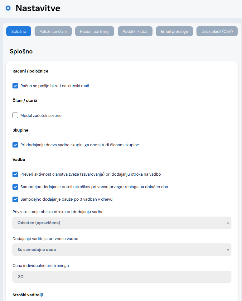 Zaradi preglednosti smo dodali podnaslove in predele združili v smiselne celote. Nastavitve najdete v meniju pod “Admin” => “Nastavitve