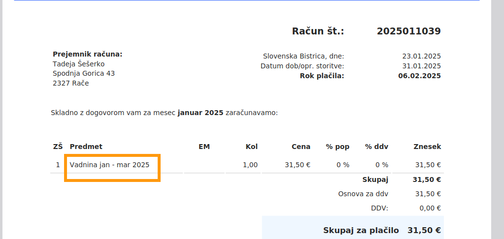 Dodana je bila možnost spremembe naziva izdelka na postavkah položnice.