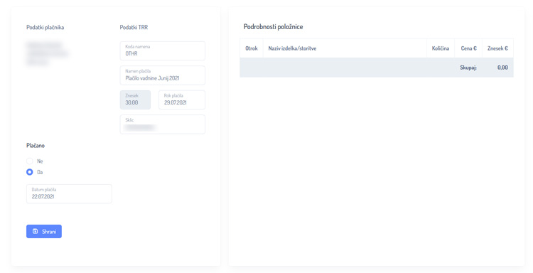 Urejanje podatkov položnice
