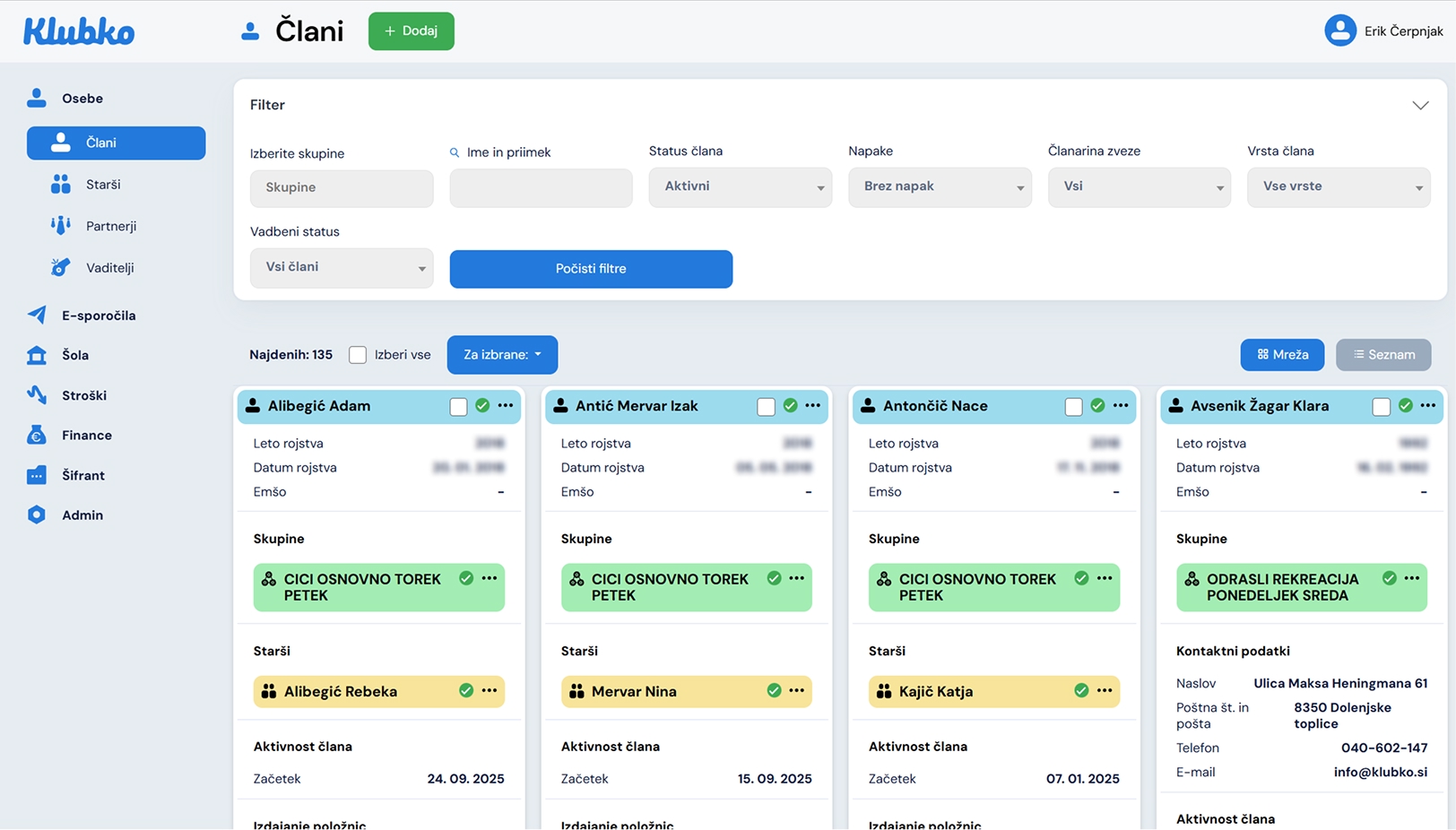 Skupine (iz začetnega zaslona lahko dodajate in urejate skupine)