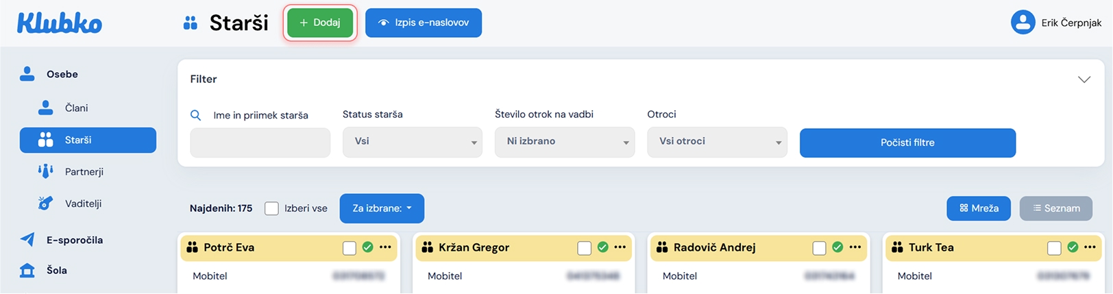 Dodajanje starša
