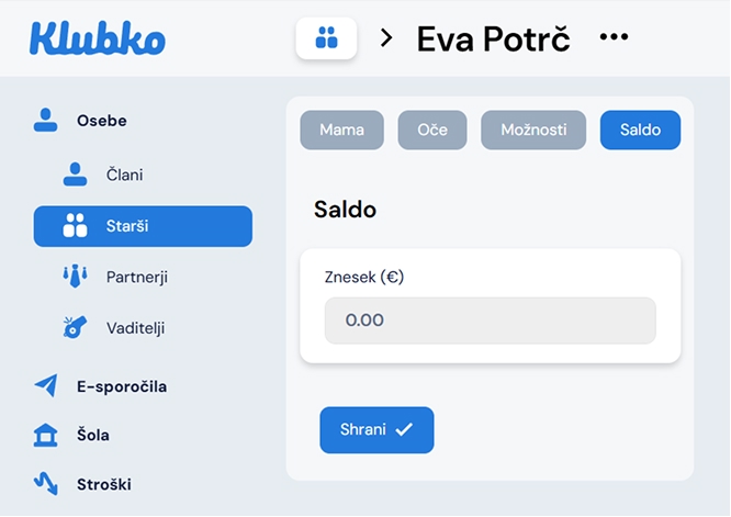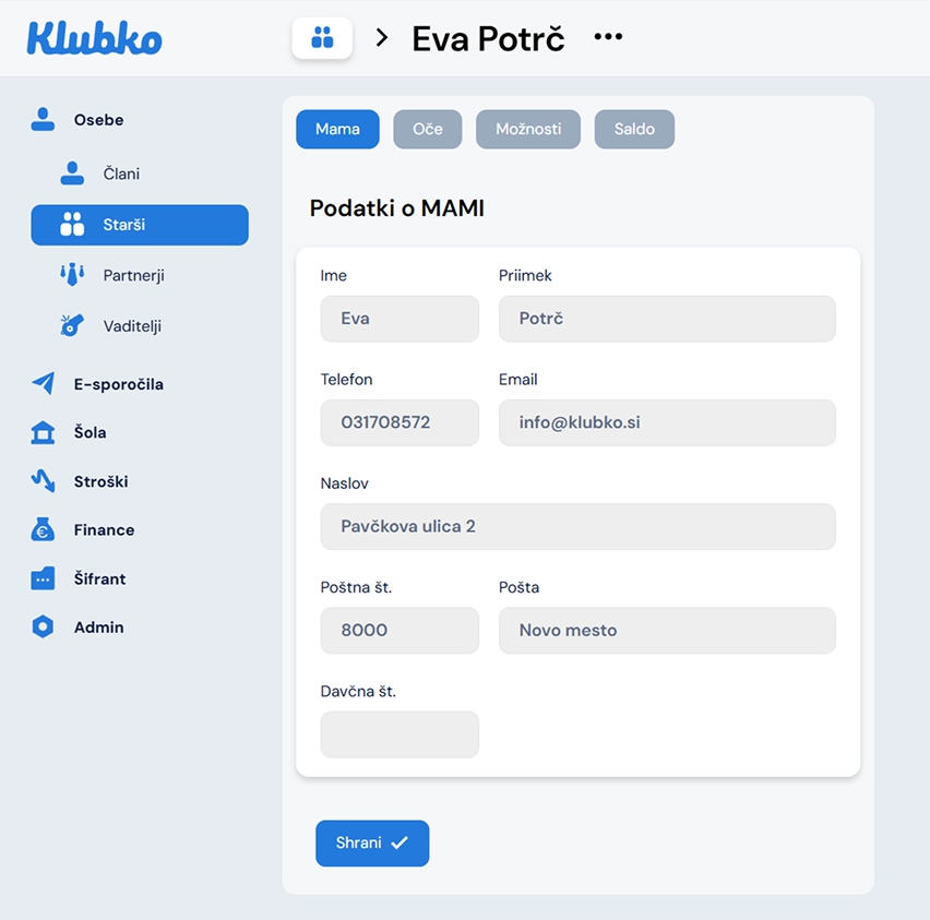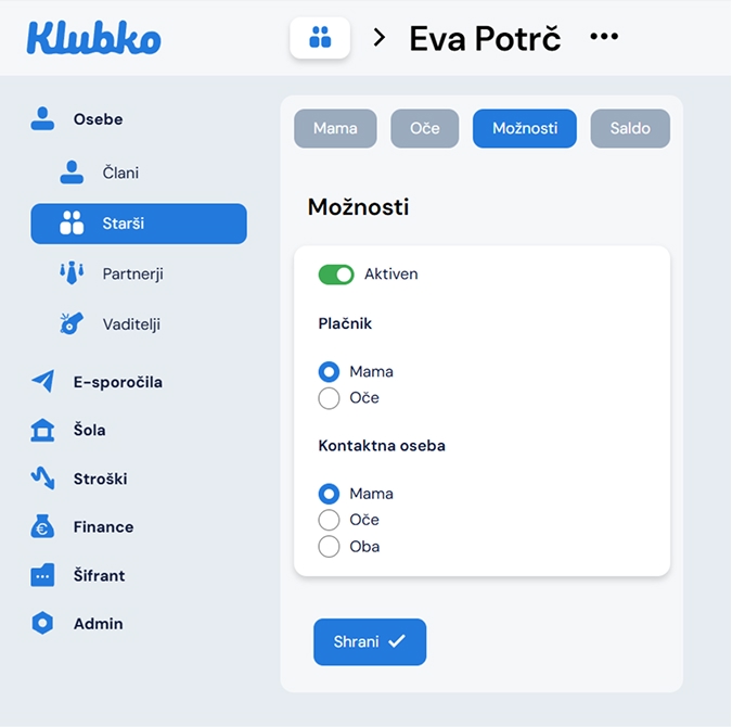 Odpre sem vam okno. Za urejanje starša uporabite gumb Uredi