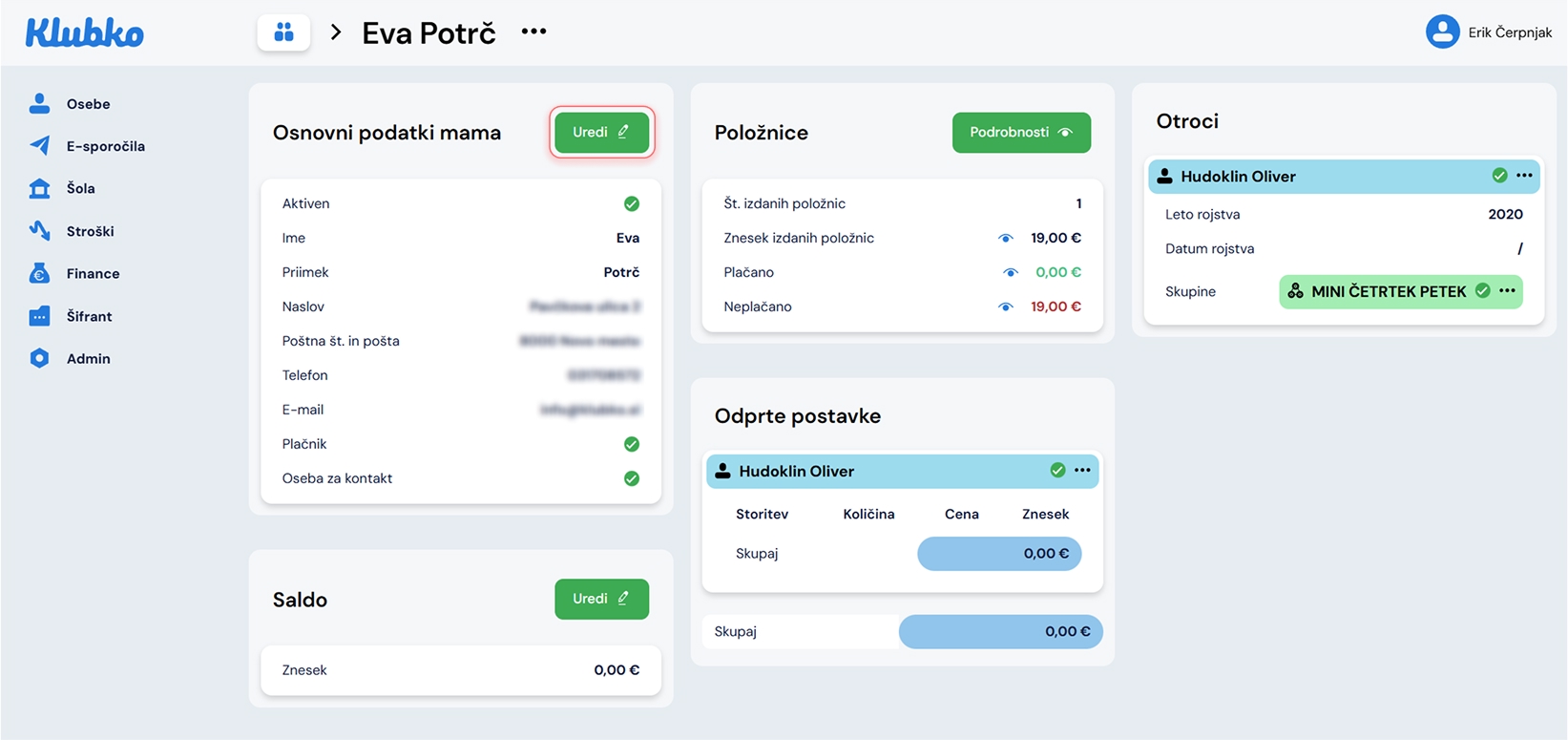 Izberite zavihek Otroci. Tukaj je enostaven pregled nad vsemi otroci. Če želite urediti katerega od otrok izberite gumb Podrobnosti.
