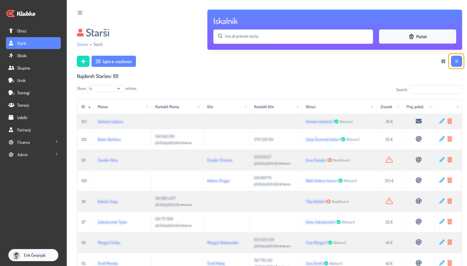 Prijava v aplikacijo klubko