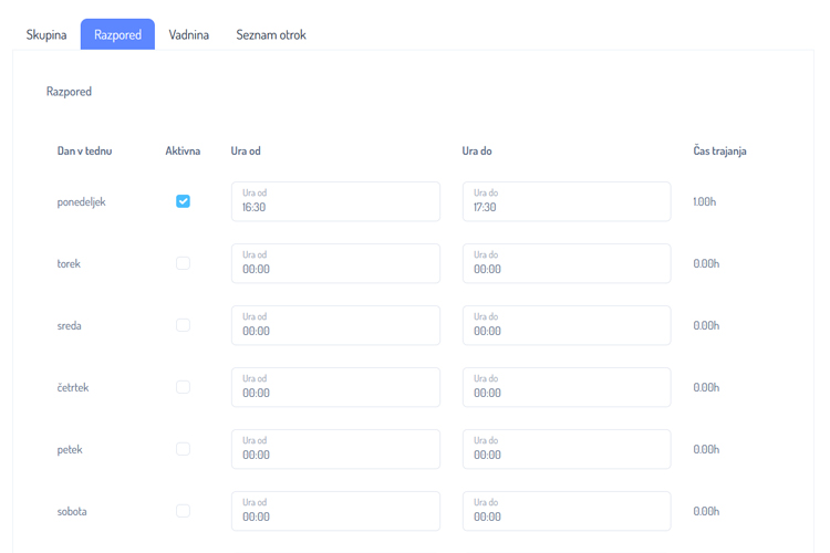 Izberite dan v tednu in določite uro treninga