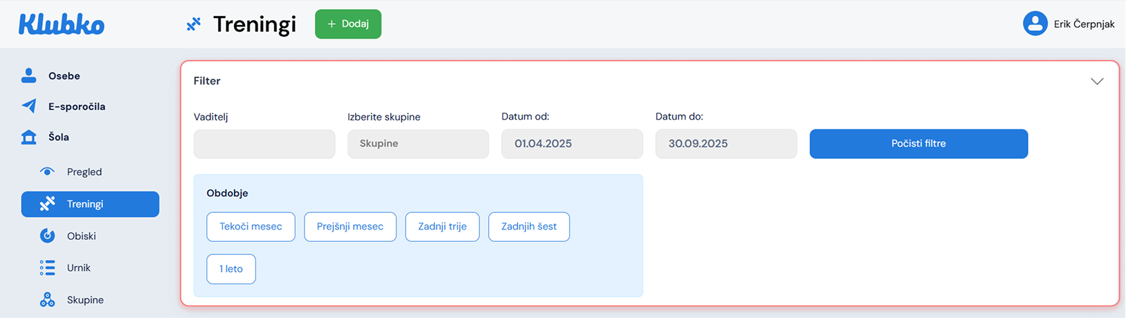 Dodajanje treninga