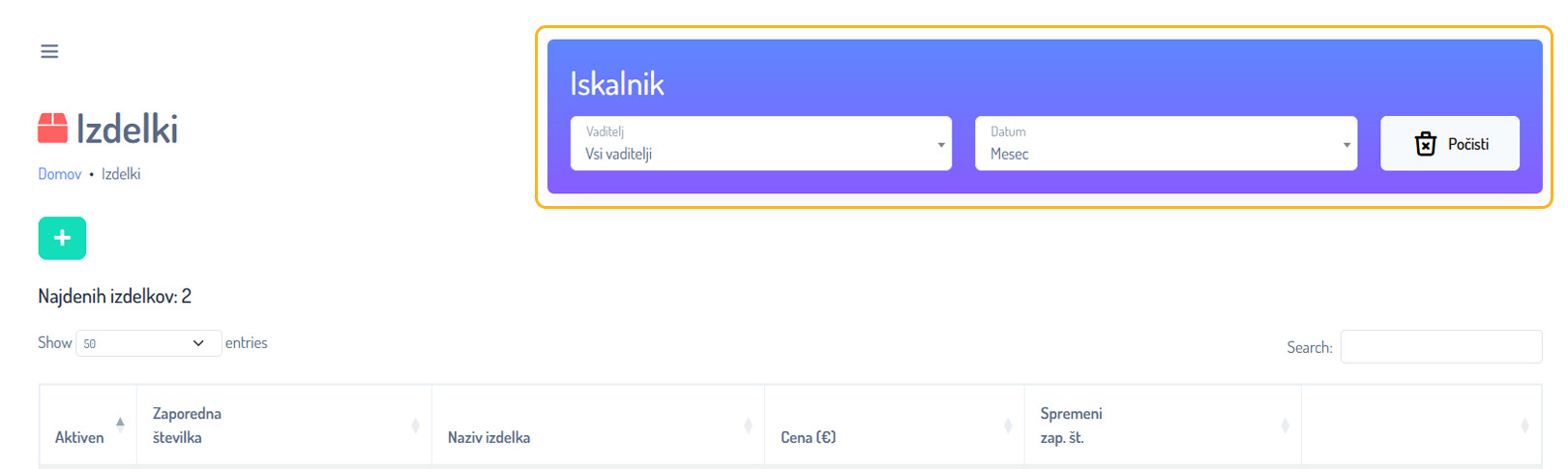 Dodajanje izdelka